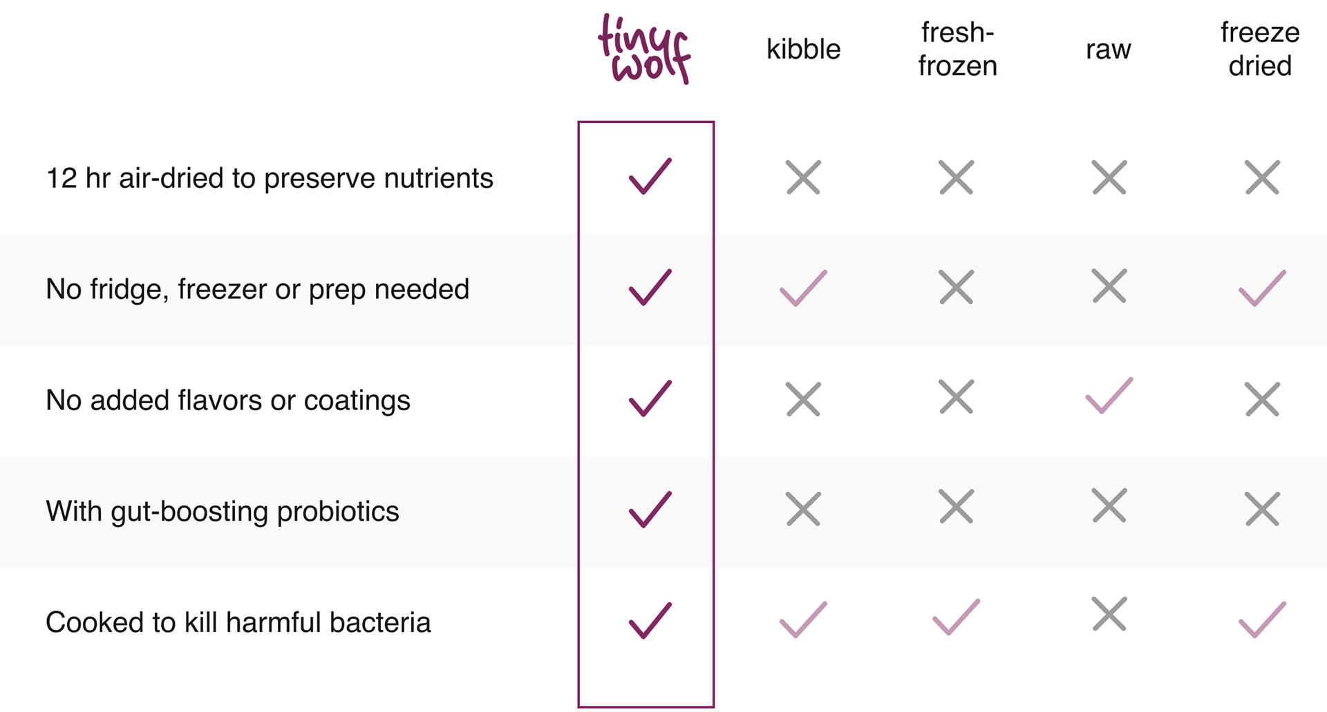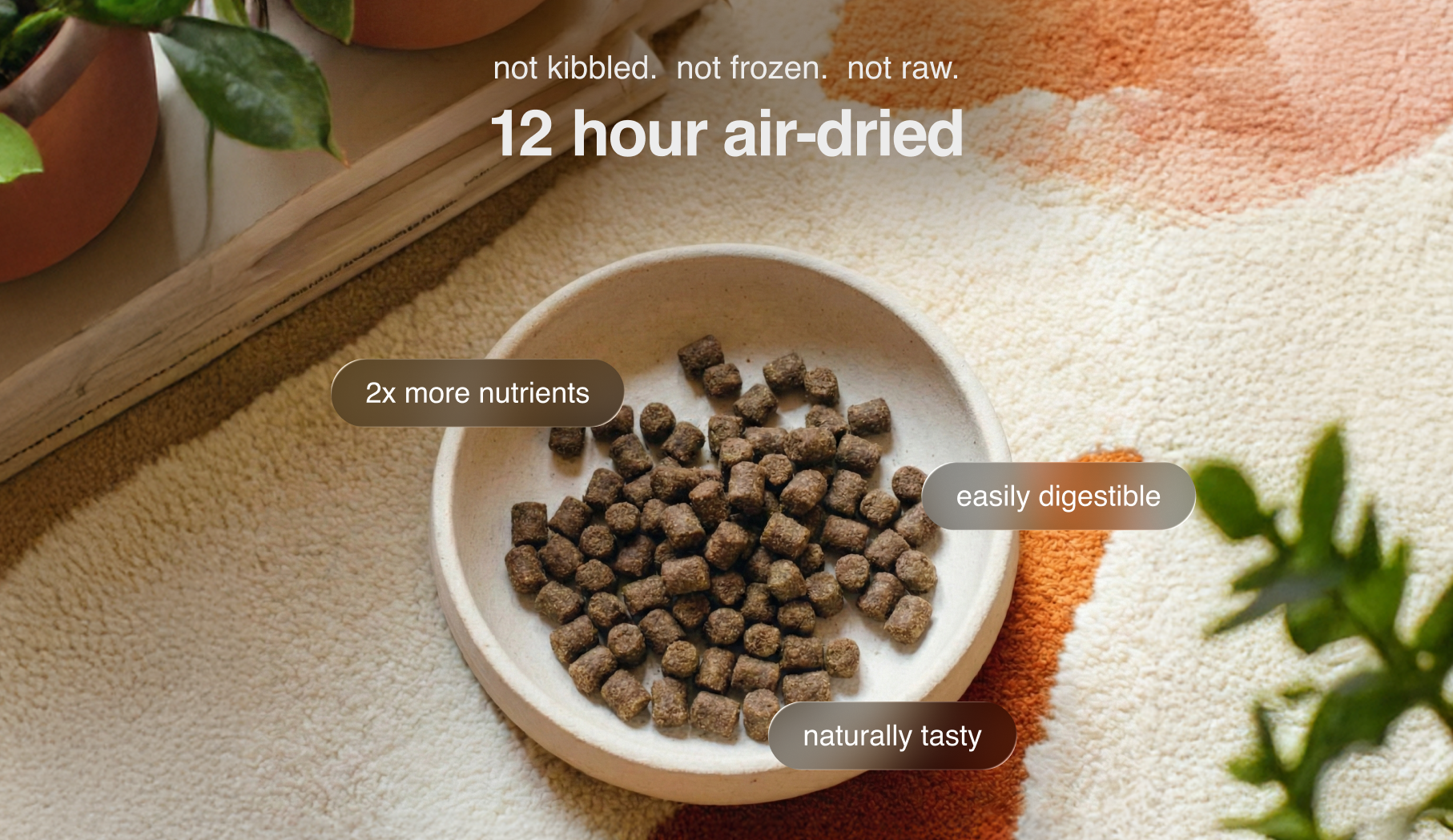 Product Requirement: Must require no prep, no thawing, no fridge/freezer - as convenient as kibble.